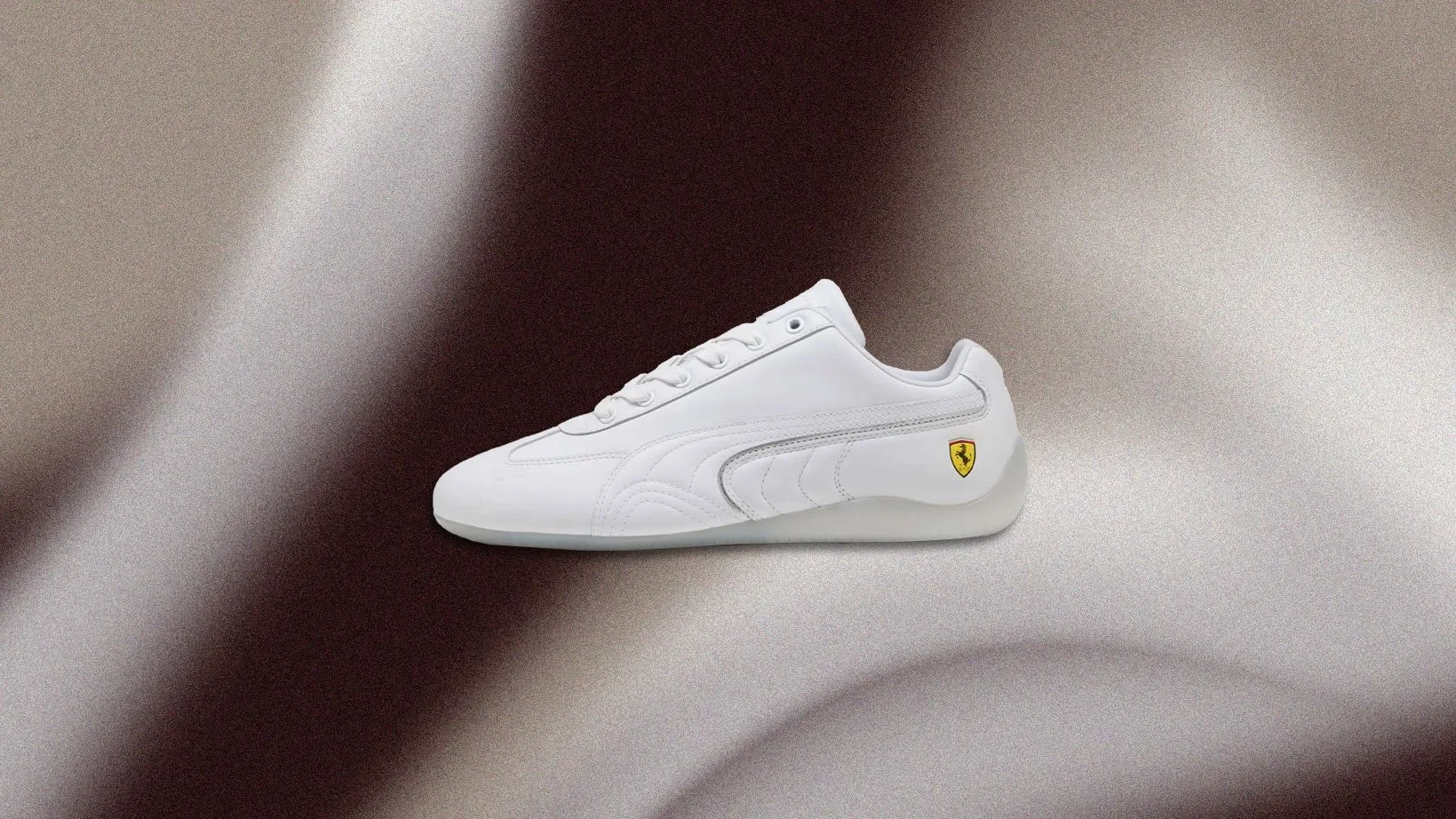 Unlike its suede predecessors, this limited-edition Speedcat OG features a full leather construction, completely drenched in a crisp white finish. The signature Puma Big Cat logo is subtly debossed across the lateral toe, while Ferrari’s iconic Prancing Horse proudly adorns the heel.